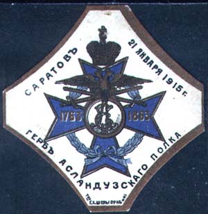 Герб Асландузского полка. Текст: «Герб Аслан-дузского полка».
