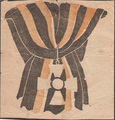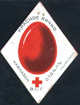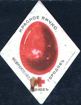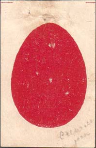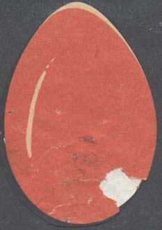 1915(?) г. Виньетка в форме яйца разм. 37 х 54 мм. Одноцветная печать на желтоватой бумаге. Пасхальное яйцо.