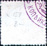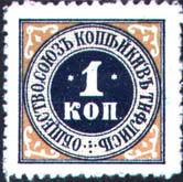 1915 г. Разм. рамки 22 х 22 мм. Двухцветная печать на белой бумаге. Без клея. Зубц. 11 1/2. В центре в круге номинал, по периметру круга текст: «Общество «Союз Копейки в Тифлисе»».