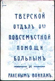 Организация-издатель: ТВЕРСКОЙ ОТДЕЛ ОБЩЕСТВА ПОВСЕМЕСТНОЙ ПОМОЩИ БОЛЬНЫМ И РАНЕНЫМ ВОИНАМ