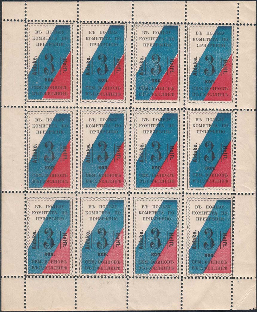 1916 г. Разм. и рис. марки предыдущего выпуска номиналом 1 к. Трехцветная печать на бумаге различных цветов и качества. Зубц. 11 1/2. и Б.З. С клеем и без клея.