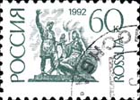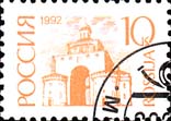 1992 г. 25.061992. - 28.08.1992 г.г. ПЕрвый стандартный выпуск. Разм. 26 х 18 мм. Одноцветная офсетная печать на мелованной и простой бумаге. Зубц. 12 1/4 х 13 1/4.