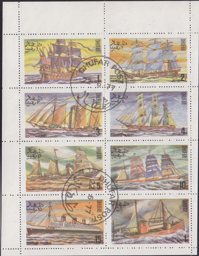 1977 г. 27.06.1977 Разм. рис. 41 х 27 мм. Многоцветная печать на белой глянцевой бумаге. Зубц. 14. В центре изображения кораблей.