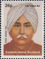 1997 г. Разм. по перф. 30 х 41 мм. Многоцветная печать на белой глянцевой бумаге. Зубц. 12 1/2. С клеем. В центре портреты индийских политических деятелей.