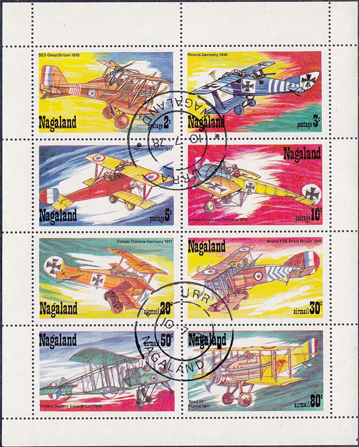 1978 г. Разм. рис. 46 х 27 мм. Многоцветная печать на белой бумаге. Зубц. 14 1/4. В цен ре самолеты различных моделей и тексты на английском языке.