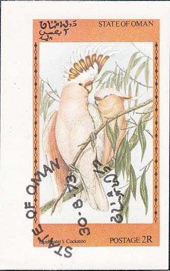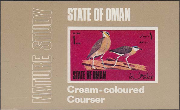 1973 г. Разм. рис. 45 х 26 мм. Многоцветная печать на белой глянцевой бумаге. Зубц. 14. В центре на сплошном фоне изображения птиц различных видов. По периметру пояснительная подпись, название территории на английском и арабском языках и номинал.
