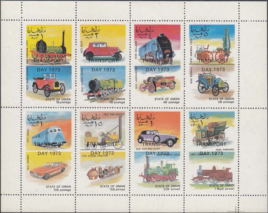 1973 г. Надпечатка текста в две строки на английском языке: "День транспорта" на блоке предыдущего выпуска.