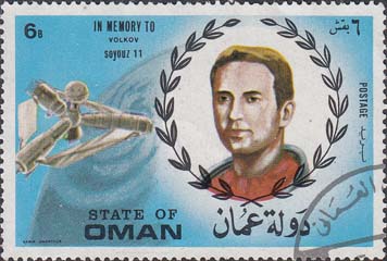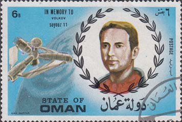 1972 г. Памяти погибших космонавтов. Разм. рис. 55,5 х 36 мм. Многоцветная печать на белой глянцевой бумаге. Зубц. 13 1/4. Различные комические корабли и портреты космонавтов в обрамлении венка.
