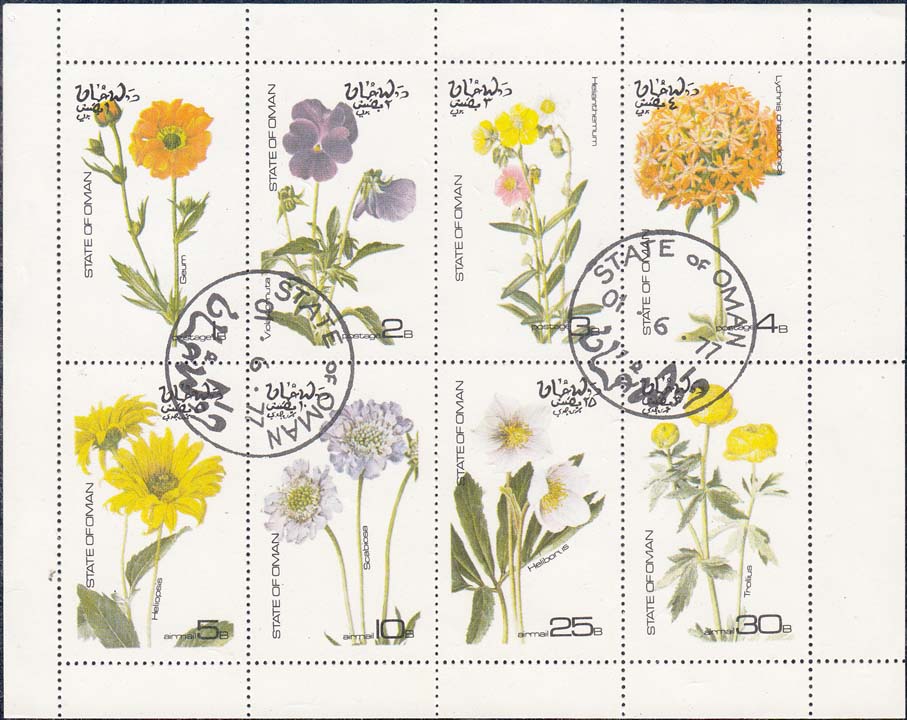1973 г. Блок разм. 58 х 89 мм. Многоцветная печать на белой глянцевой бумаге. В центре растение. По периметру номинал и тексты на арабском и английском языках.