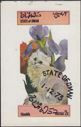 1973 г. Блок разм. 58 х 89 мм. Многоцветная печать на белой глянцевой бумаге. В центре кошка на фоне цветов. По периметру номинал и тексты на арабском и английском языках.