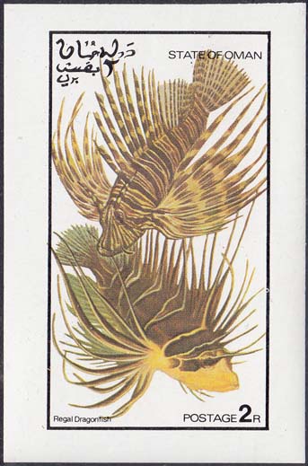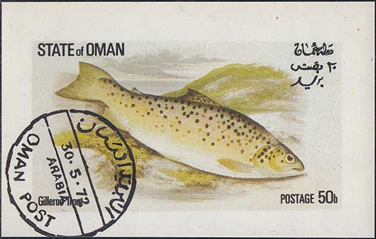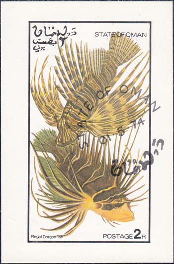 1974 г. Разм. 57 х 89 мм. Многоцветная печать на белой бумаге. В центре в прямоугольной рамке разм. 42 х 76 мм две рыбы. Сверху название территории на арабском и английском языках. Внизу подпись к рисунку на английском языке и номинаал.