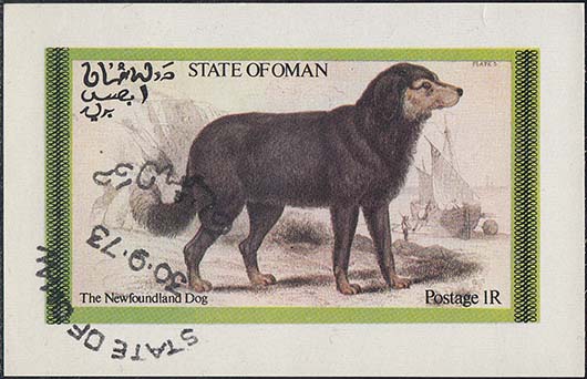1973 г. Разм. 89 х 57 мм. Многоцветная печать на белой бумаге. В центре собака. Тексты на английском и арабском языке.