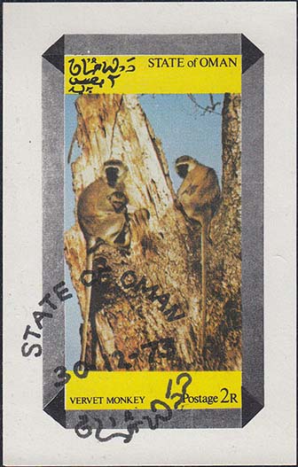 1973 г. Разм. 57 х 89 мм. Многоцветная печать на белой бумаге. В центре две обезьяны на дереве. Тексты на английском и арабском языке.