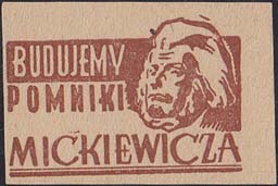 1930 г. Разм. 42 х 29 мм. Одноцветная печать на светло-серой бумаге. Справа портрет А. Мицкевича. Слева текст на польском языке в три строки: "На постройку памятника Мичкевичу".