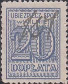 1934 г. Одноцветная печать на белой бумаге. Разм. рамки 18 х 23,5 мм. Зубц. 11 1/2. С клеем. В двойной прямоугольной рамке в центре номинал. Сверху текст в в две строки на Польском языке: «Социальное страхование г. Вильно». Внизу текст на польском языке: «Доплата».