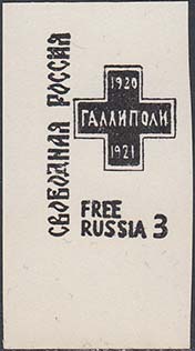 1961 г. 15.11.1961 г. Разм. рис. 20 х 32 мм. Одноцветная печать на белой бумаге. С клеем. В цен ре Галиполийский крест. По периметру номинал и текст на русском и английском языке.