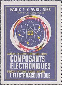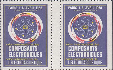 1968 г. Разм. 41 х 44 мм. Двухцветная печать на белой бумаге. Зубц. 11. С клеем. В центре эмблема выставки. Тексты на французском языке.