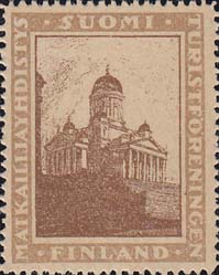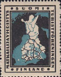 1930(?) г. Разм. рамки 29 х 39 мм и 39 х 29 мм. Двухцветная и трехцветная печать на белой бумаге. Зубц. 11 1/2. С клеем. В двойной прямоугольной рамке в центре различные рисунки. По периметру между рамками текст на финском и шведском языках: "Финская Туристическая Ассоциация".