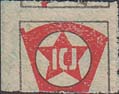 1925(?) г. Разм. рамки 15 х 13 мм. Двухцвентая печать на белой бумаге. С клеем(?). В центре значок КИМ с аббревиатурой на французском языке.