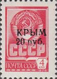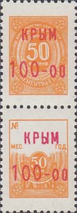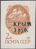 1993 г. Черная надпечатка текста "Крым" и нового номинала на стандартных почтовых марках СССР разных выпусков.