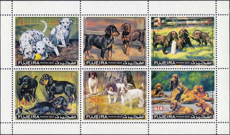 2000(?) г. Разм. рис. 41 х 32 мм. Многоцветная печать на белой глянцевой бумаге. Зубц. 14. В центре собаки различных пород.