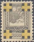 1921 г. Разм. рамки 15 х 20 мм. Трехцветная печать на кремовой бумаге. С клеем. Зубц. 11 1/2. С клеем. В рамке в центре дерево в снегу(?) и восходящее солнце. По углам желтые кресты на черном фоне. Под рисунком текст в две строки на финском языке. Справа внизу под рамкой мелким шрифтом неразборчиво выходные данные.