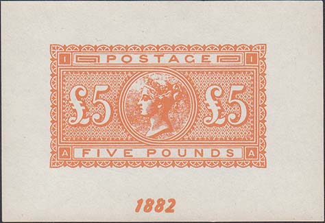 1982(?) г. Разм. 80 х 54 мм. Одноцветная печать на белой глянцевой бумаге. С клеем. В центре репродукция стандартной марки номиналом 5 фунтов.