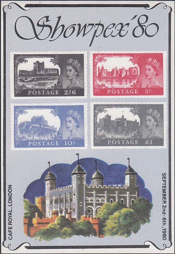 1980 г. Листок разм. 97 х 141 мм. Многоцветная печать на белой бумаге. Сверху серия стандартных марок Великобритании. Внизу замок.