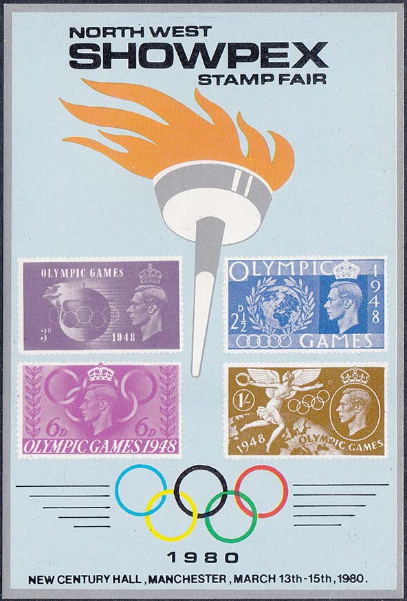 1980 г. Листок разм. 99 х 146 мм. Многоцветная печать на белой бумаге. С клеем. В центре четыре почтовых марки Великобритании и олимпийский факел. Внизу олимпийская символика и тексты на английском языке.