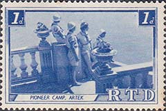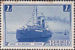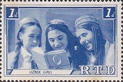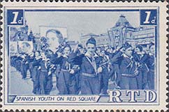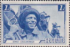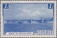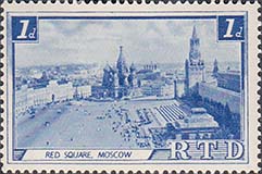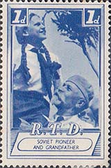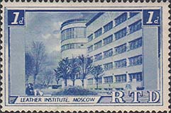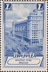 1938 г. Разм. рамки 36 х 23 мм или 23 х 36 мм. Одноцветная печать на белой бумаге. Зубц. 14 3/4. С клеем. В центре различные сюжеты жизни в СССР с пояснительными текстами на английском языке, номинал и аббревиатура на английском языке "R.T.D.".