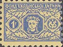 1956 г. 20.11.1956 г. Сбор в Фонд Украинского Ребенка. Разм. рамки 19 х 13 мм. Одноцветная печать на светло-желтой бумаге. Зубц. 11. С клеем. В декоративной рамке в центре голова девочки в национальном головном уборе. Слева номинал, справа аббревиатура: "СУБ". Сверху текст на украинском языке: "В Фонд Украинского Ребенка".