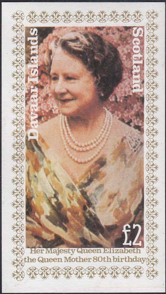 2006 г. Блок разм. 58 х 102 мм. Многоцветная печать на белой глянцевой бумаге. В центре репродукция портрета Елизаветы II. По периметру номинал и название территории на английском языке.