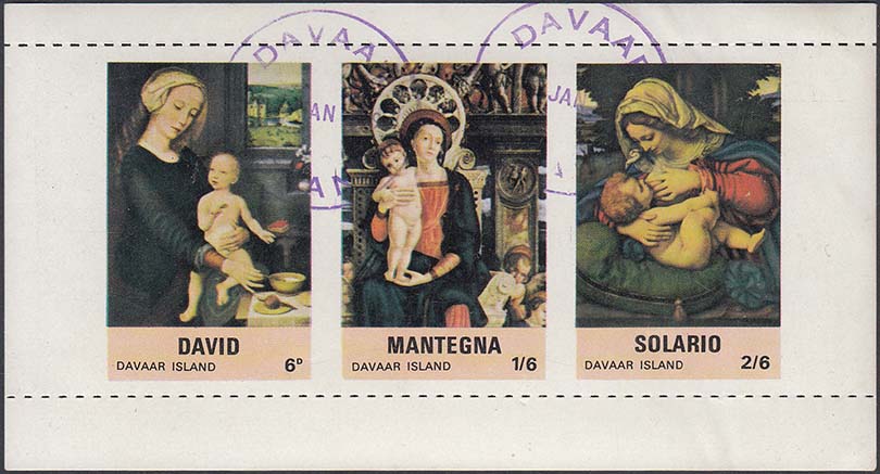 1992(?) г. Разм. по перфорации 62 х 38 мм. Многоцветная печать на белой мелованной бумаге. Зубц. 14 1/2. С клеем.