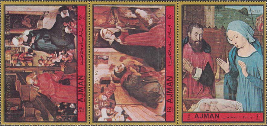 1972 г. Разм. рис. 66 х 47 или 47 х 66 мм. Многоцветная печать на белой бумаге. Зубц. греб. 14. В центре различные картины. Внизу название страны и номинал на английском и арабском языках.