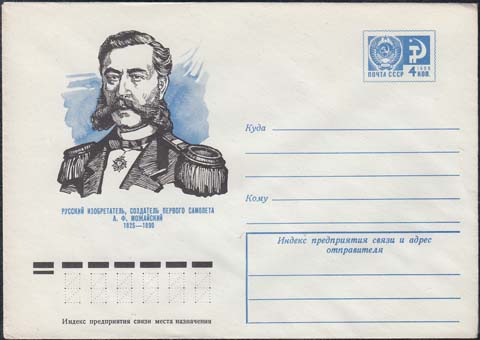 1974 г. Русский изобретатель, создатель первого самолета А.Ф.Можайский 1825-1890.