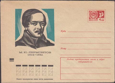 1973 г. Портрет М.Ю. Лермонтова. Текст: "М.Ю. Лермонтов 1814 - 1841".