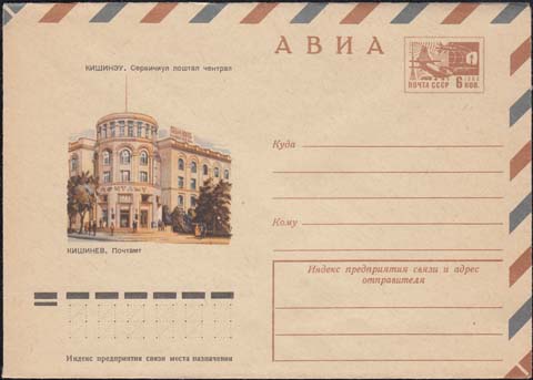 1974 г. Здание почтамта. Текст: "Кишинев. Почтамт".