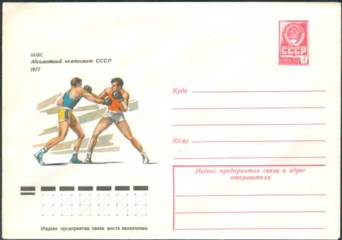 1977 г. Два боксера. Текст: "Бокс. Абсолютный чемпионат СССР 1977".