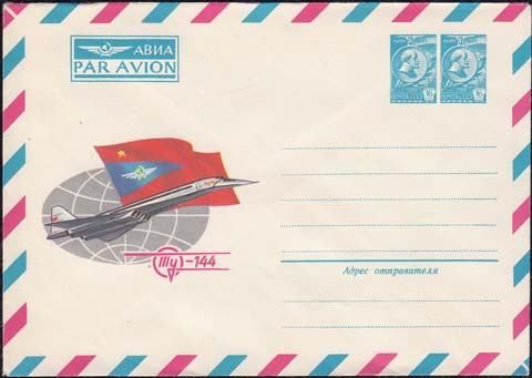 1978 г. Самолет ТУ-144 и флаг Аэрофлота. Текст: "Ту-144".