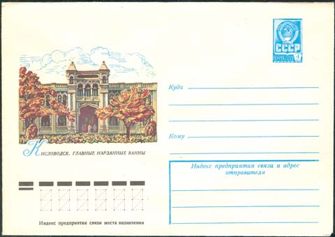 1978 г. Здание ванн. Текст: "Кисловодск. Главные нарзанные ванны".