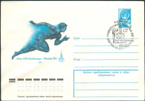 1979 г. Бегущий спортсмен. Текст: "Игры XXII Олимпиады - Москва-80 бег".
